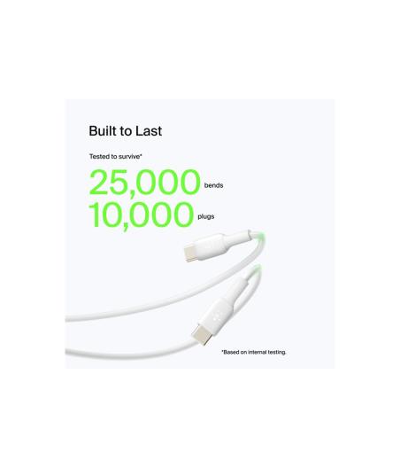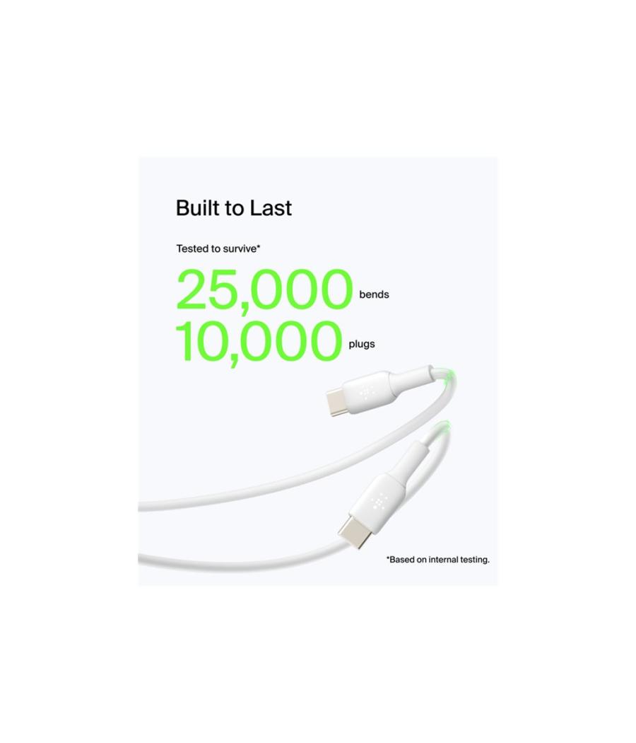 Charge rapide jusqu'à 240 W pour les ordinateurs portables, tablettes et smartphones - Recharge rapide d'un MacBook Pro 14” de zéro à 50 % en 31 minutes - Câble doté de deux puces électroniques et d'une fonction de sécurité anti-surchauffe pour une alimentation électrique sécurisée - Connecteurs durables en aluminium anodisé - Revêtement en nylon doublement tressé testé pour résister à plus de 30 000 flexions - Câble certifié USB-IF et conforme USB 2.0 - Compatibilité universelle avec MacBook, Chromebook, iPad et une large gamme d'autres appareils USB-C - Puissance nominale: 48 V / 5 A, 240 W - Longueur du câble intégré 2M - Câble à gaine tressée en nylon.