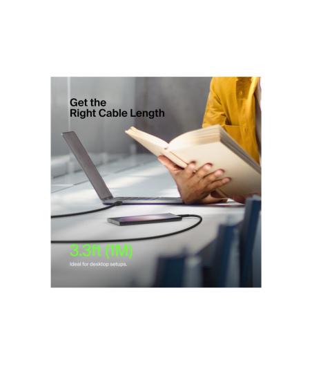 Charge rapide jusqu'à 240 W pour les ordinateurs portables, tablettes et smartphones - Recharge rapide d'un MacBook Pro 14” de zéro à 50 % en 31 minutes - Câble doté de deux puces électroniques et d'une fonction de sécurité anti-surchauffe pour une alimentation électrique sécurisée - Connecteurs durables en aluminium anodisé - Revêtement en nylon doublement tressé testé pour résister à plus de 30 000 flexions - Câble certifié USB-IF et conforme USB 2.0 - Compatibilité universelle avec MacBook, Chromebook, iPad et une large gamme d'autres appareils USB-C - Puissance nominale: 48 V / 5 A, 240 W - Longueur du câble intégré 2M - Câble à gaine tressée en nylon.