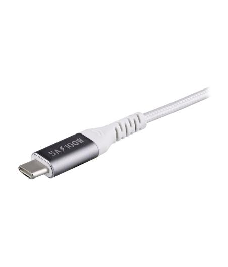 Charge rapide jusqu'à 240 W pour les ordinateurs portables, tablettes et smartphones - Recharge rapide d'un MacBook Pro 14” de zéro à 50 % en 31 minutes - Câble doté de deux puces électroniques et d'une fonction de sécurité anti-surchauffe pour une alimentation électrique sécurisée - Connecteurs durables en aluminium anodisé - Revêtement en nylon doublement tressé testé pour résister à plus de 30 000 flexions - Câble certifié USB-IF et conforme USB 2.0 - Compatibilité universelle avec MacBook, Chromebook, iPad et une large gamme d'autres appareils USB-C - Puissance nominale: 48 V / 5 A, 240 W - Longueur du câble intégré 2M - Câble à gaine tressée en nylon.