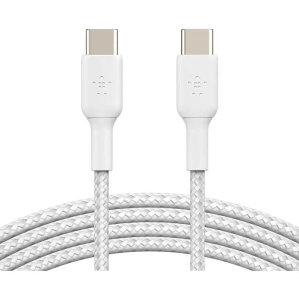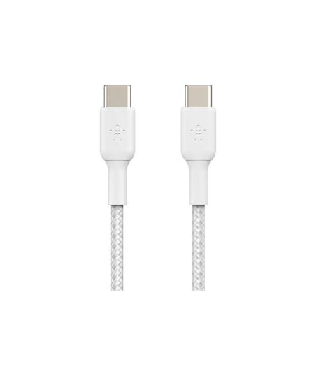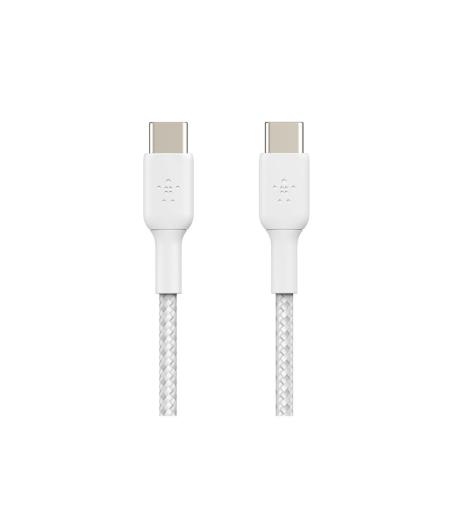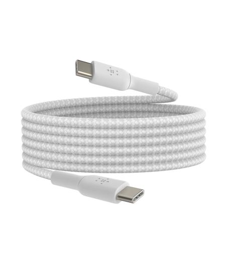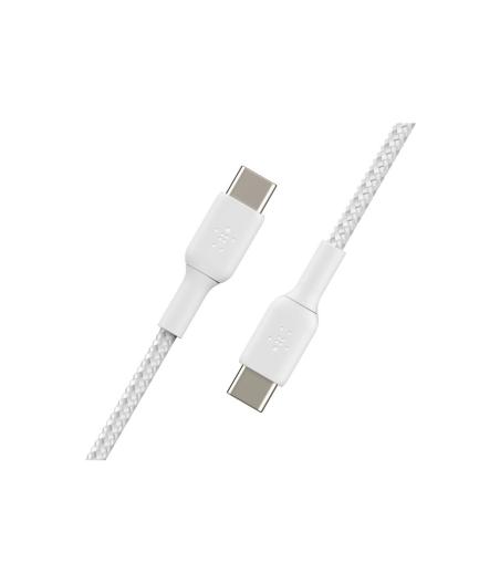Belkin BOOST CHARGE - Câble USB - 24 pin USB-C (M) pour 24 pin USB-C (M) - USB 2.0 - 3 A - 2 m - USB Power Delivery (60W), câble tressé - blanc