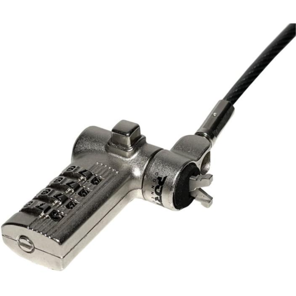 | Le câble de sécurité à combinaison universel 901235 de PORT Connect est compatible avec tous les appareils ou périphériques munis d'une encoche de sécurité. Sa tête, adaptable à l'aide d'un tournevis, convient aussi bien à une encoche standard, Nano que Noble Wedge. Personnalisez votre code grâce à 10 000 combinaisons différentes possibles et profitez d'une fonction de remise à zéro. Sa tête rotative permet un accès facile à la combinaison. Son câble en acier tressé avec gainage PVC transparent assure solidité et sécurité. Conçu à partir d'un alliage de zinc et un plaquage en nickel, le câble est très robuste. | |