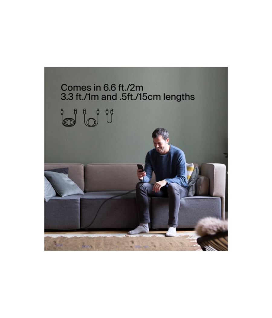 Belkin BOOST CHARGE - Câble USB - 24 pin USB-C (M) pour 24 pin USB-C (M) - USB 2.0 - 3 A - 2 m - USB Power Delivery (60W), câble tressé - blanc