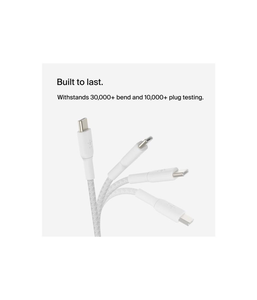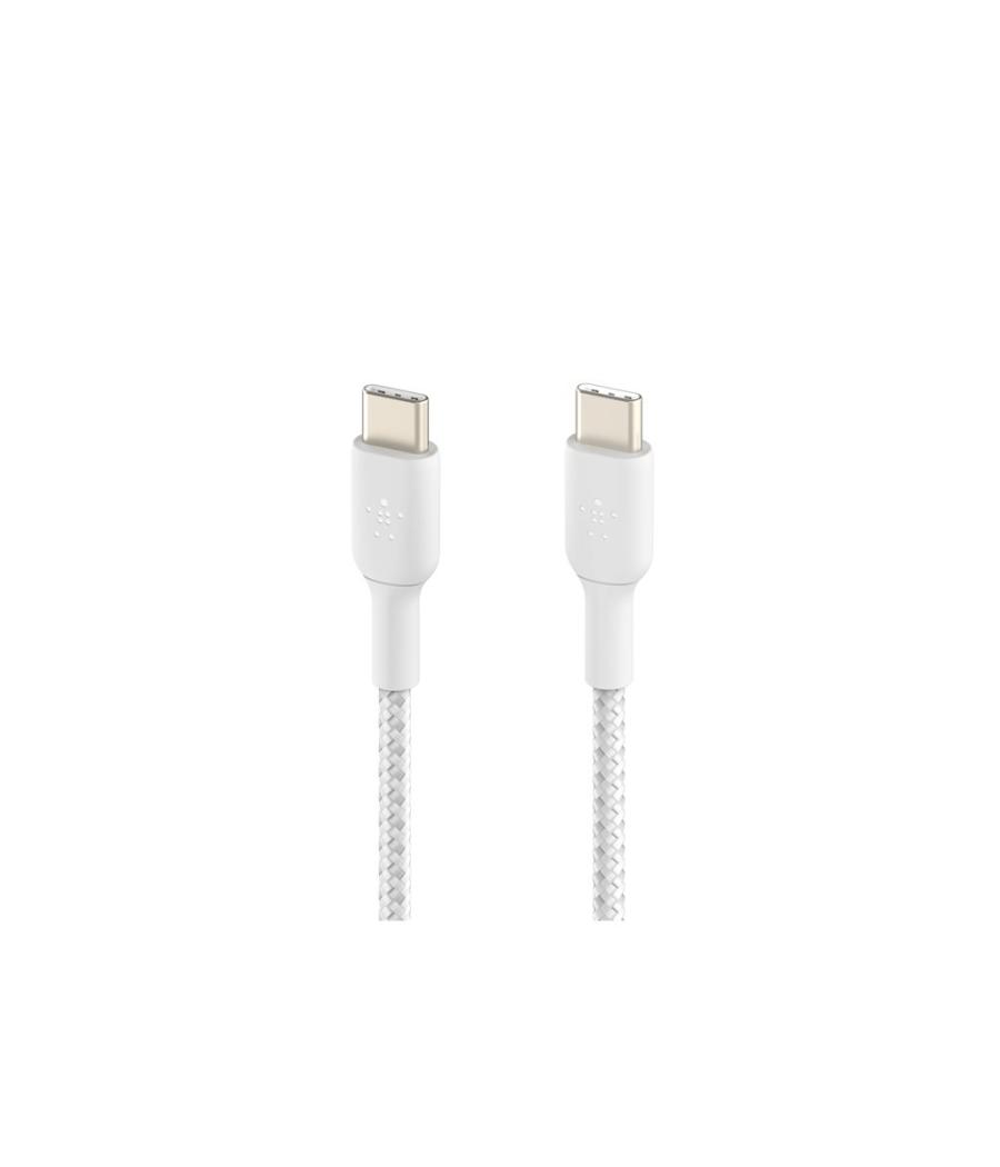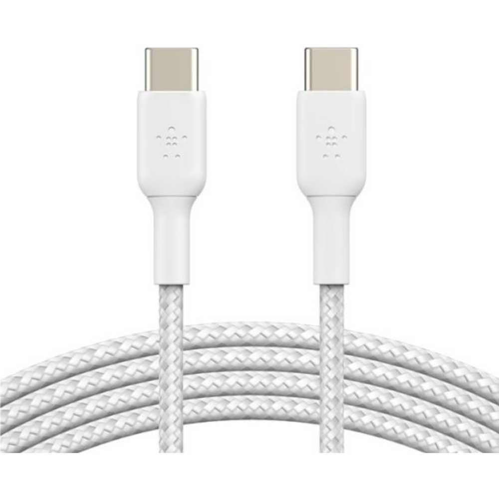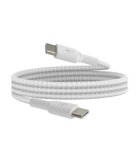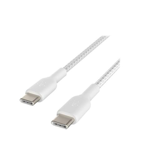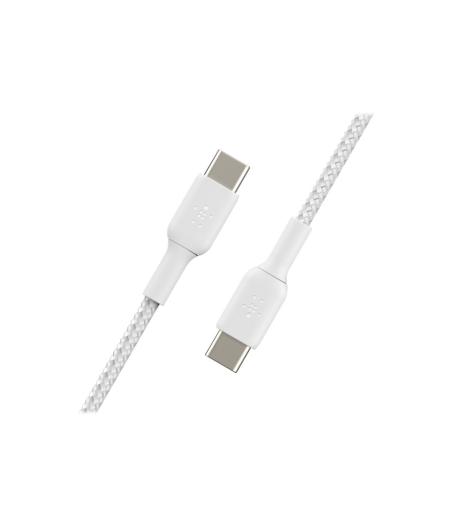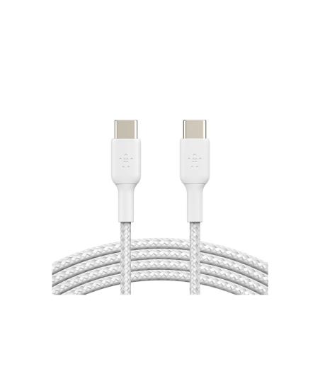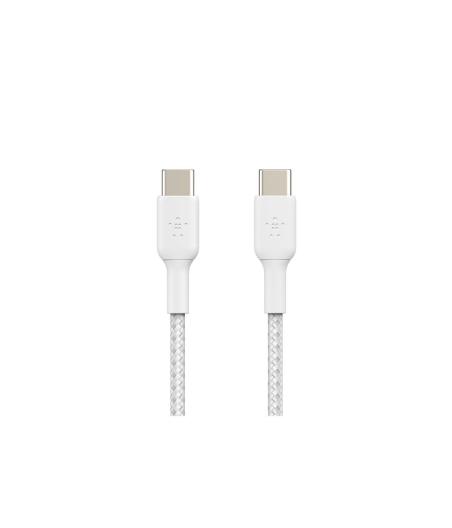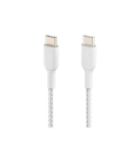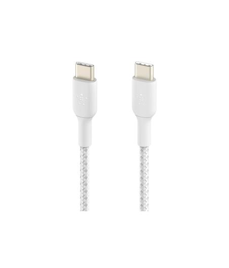 Belkin BOOST CHARGE - Câble USB - 24 pin USB-C (M) pour 24 pin USB-C (M) - USB 2.0 - 3 A - 2 m - USB Power Delivery (60W), câble tressé - blanc