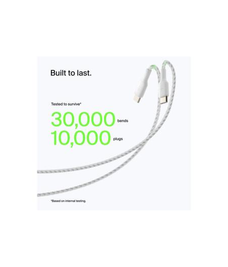 Belkin BOOST CHARGE - Câble USB - 24 pin USB-C (M) pour 24 pin USB-C (M) - USB 2.0 - 3 A - 2 m - USB Power Delivery (60W), câble tressé - blanc