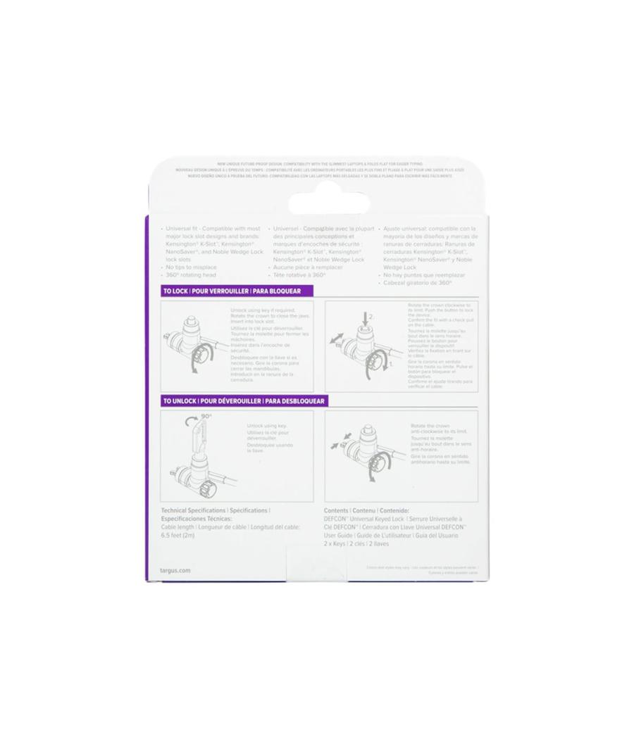 Câble de sécurité Targus DEFCON Ultimate ASP95GL - à clé universelle, avec tête de verrouillage adaptable - argent - 2 m.