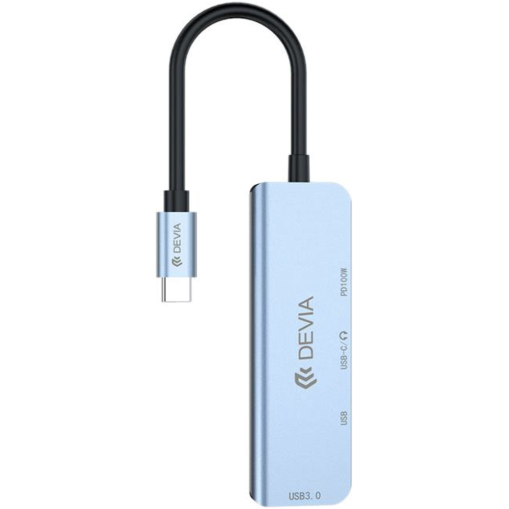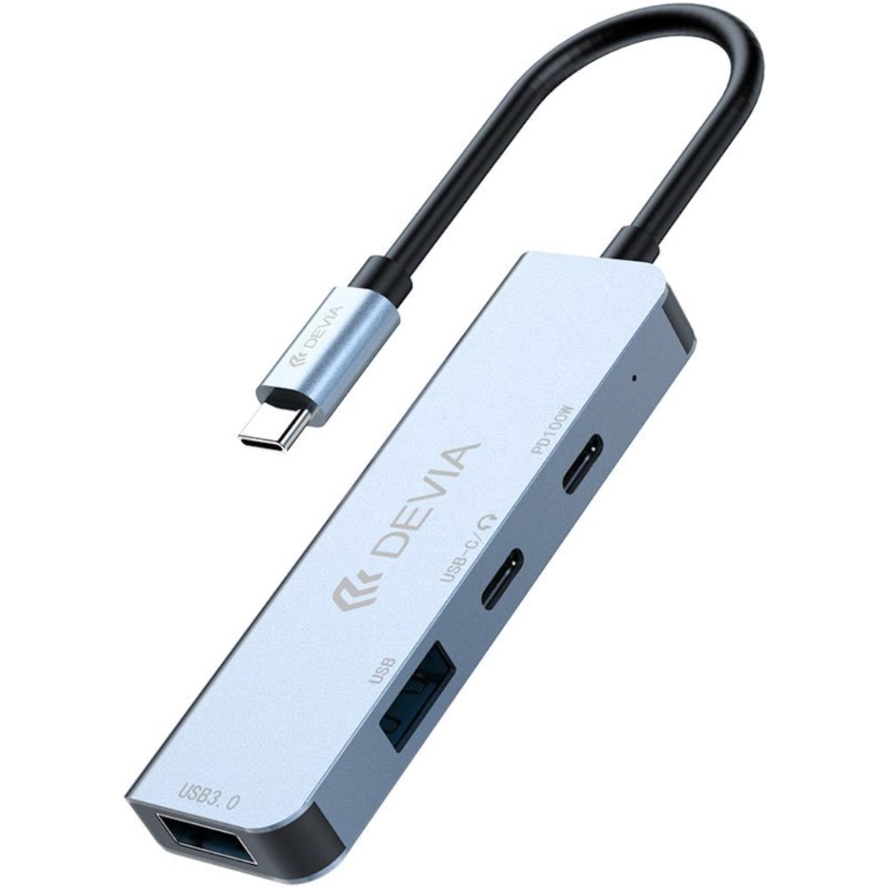 Hub d’extension Leopard Series Type-C To USB 4-en-1 avec connexion USB-C - 4 ports alimentés via USB-C - 2 ports USB-A (3.0/2.0) pour transfert de données ou charge - 1 port USB-C PD 100W (Power Delivery 3.0) - 1 port USB-C 3.1 pour données - Puces indépendantes pour chaque fonction - Couleur : gris foncé (Deep Gray) - EAN : 6938595386244.