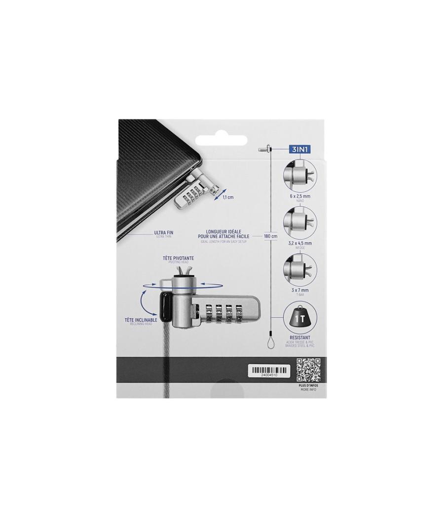 | Type de produit | Câble de sécurité - 3-en-1, coded, compatible avec T-Bar, Nano, Wedge |