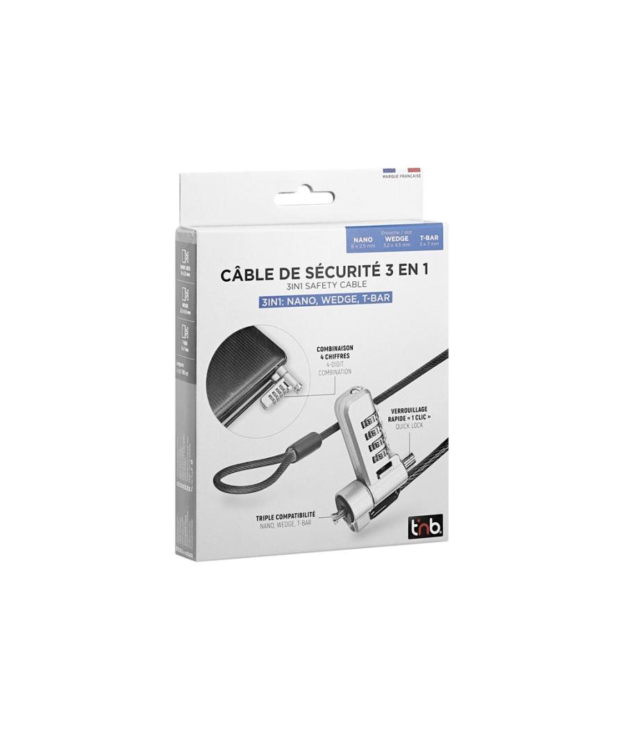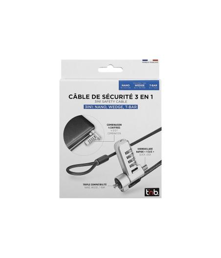 Câble de sécurité T'nB - 3-en-1, coded, compatible avec T-Bar, Nano, Wedge - gris - 1.8 m - EAN : 3303170118931.