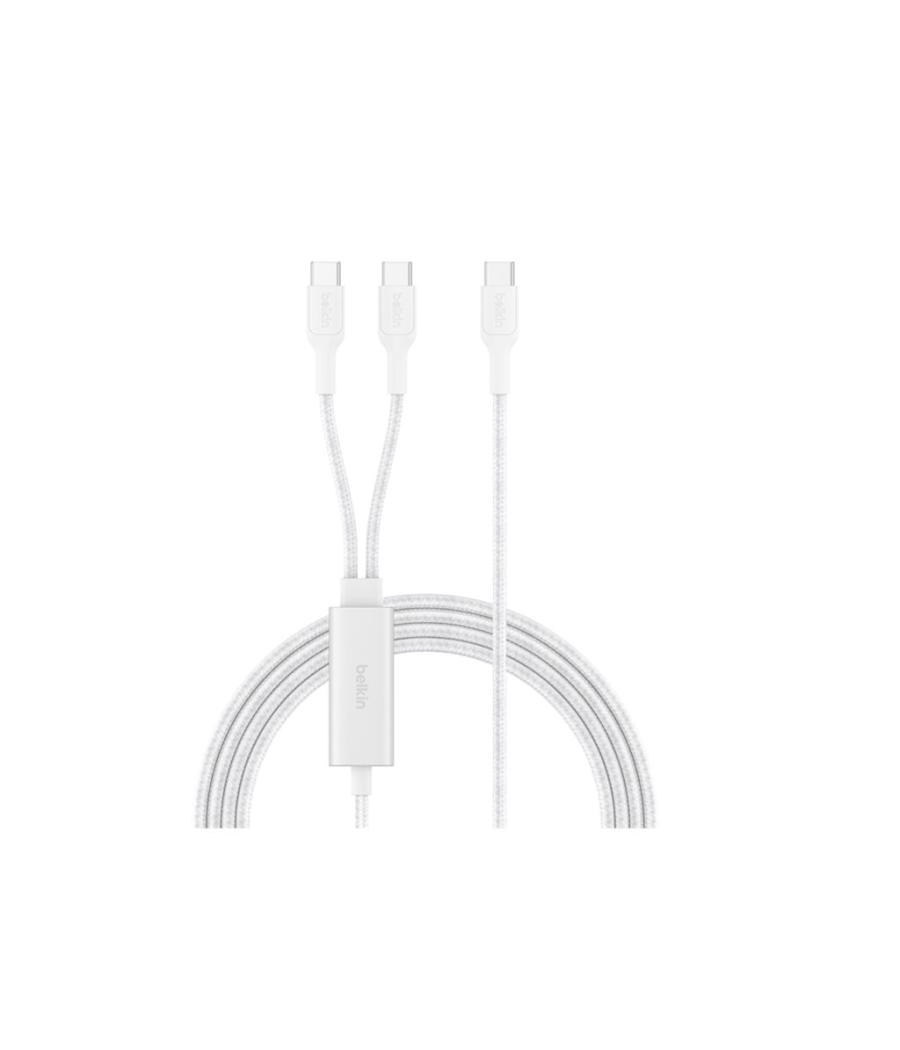 Belkin BOOST CHARGE - Câble USB - 24 pin USB-C (M) pour 24 pin USB-C (M) - USB 2.0 - 3 A - 2 m - USB Power Delivery (60W), câble tressé - blanc