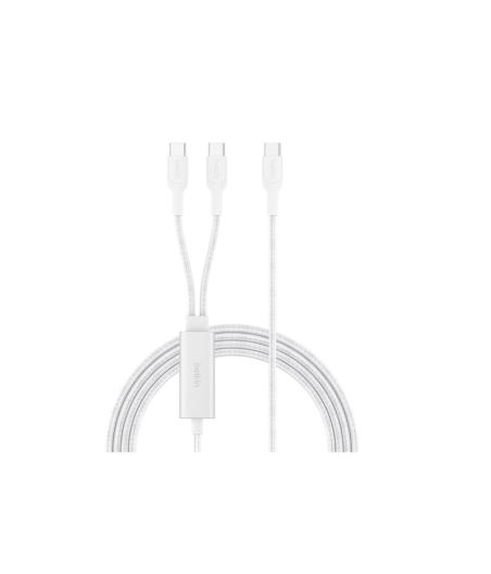 Câble de Charge (3 x Type-C) Volkano Weave Series 100W 3-en-1 - Modèle : VK-20238-BK - Permet de charger jusqu'à 3 appareils USB-C en même temps - Puissance totale 100W : 60W pour un appareil principal, 20W pour chacun des deux autres - Câble tressé renforcé : Résistant à l’usure - Longueur pratique de 1,2 m : Flexibilité sans encombrement - Charge rapide + transfert de données : Compatible avec les appareils USB-C - Connecteurs en métal durable : Conçus pour durer - Compatibilité universelle : Smartphones, tablettes, ordinateurs portables USB-C - Couleur : Noir - Code-barres : 6009555787309.