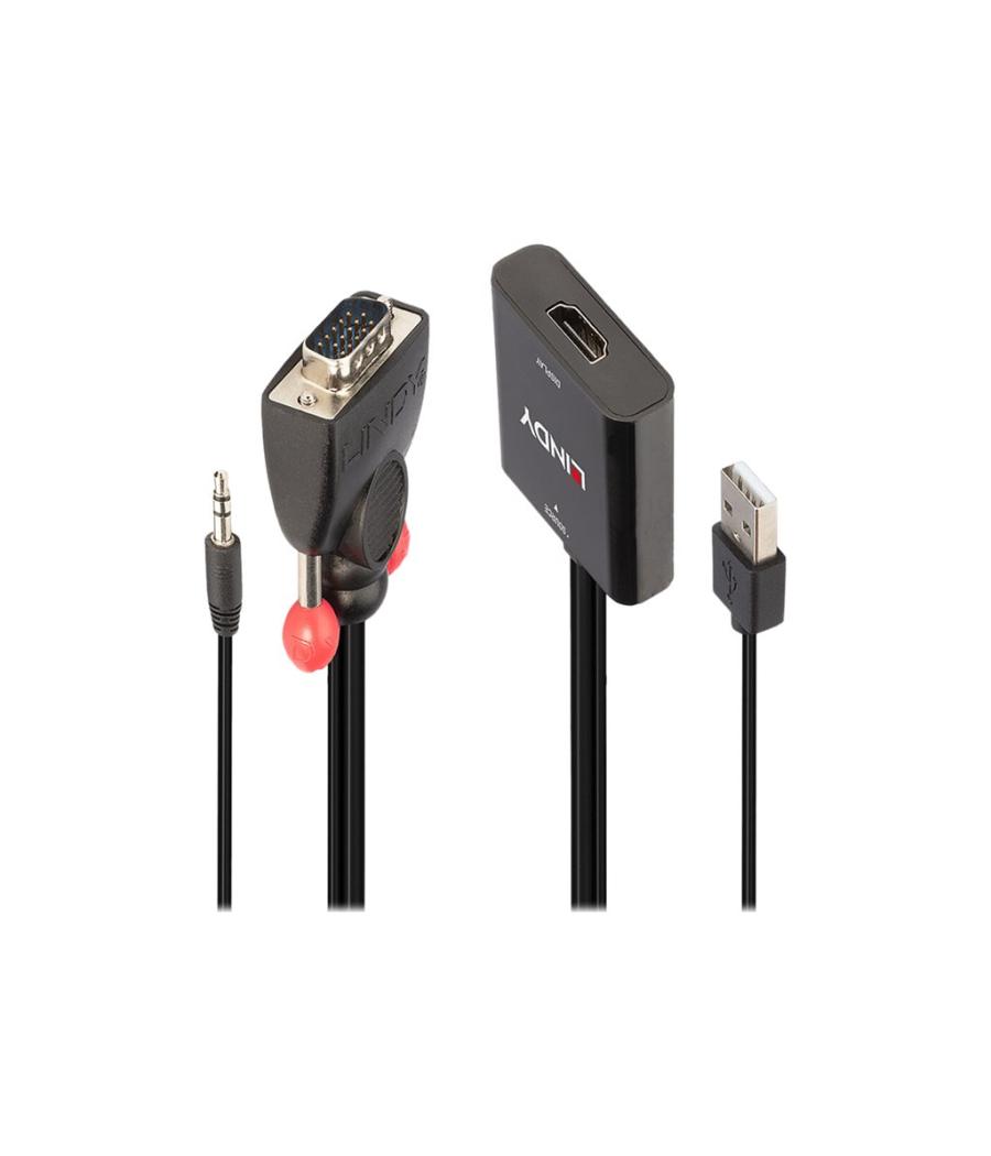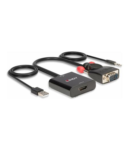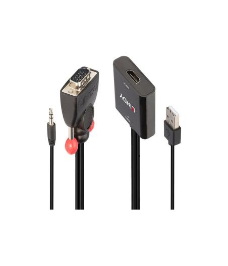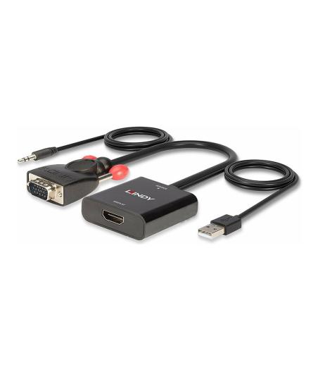Lindy - Adaptateur vidéo - HD-15 (VGA), mini-phone stereo 3.5 mm, USB (alimentation uniquement) mâle pour jack mini, HDMI femelle - 60 cm - noir