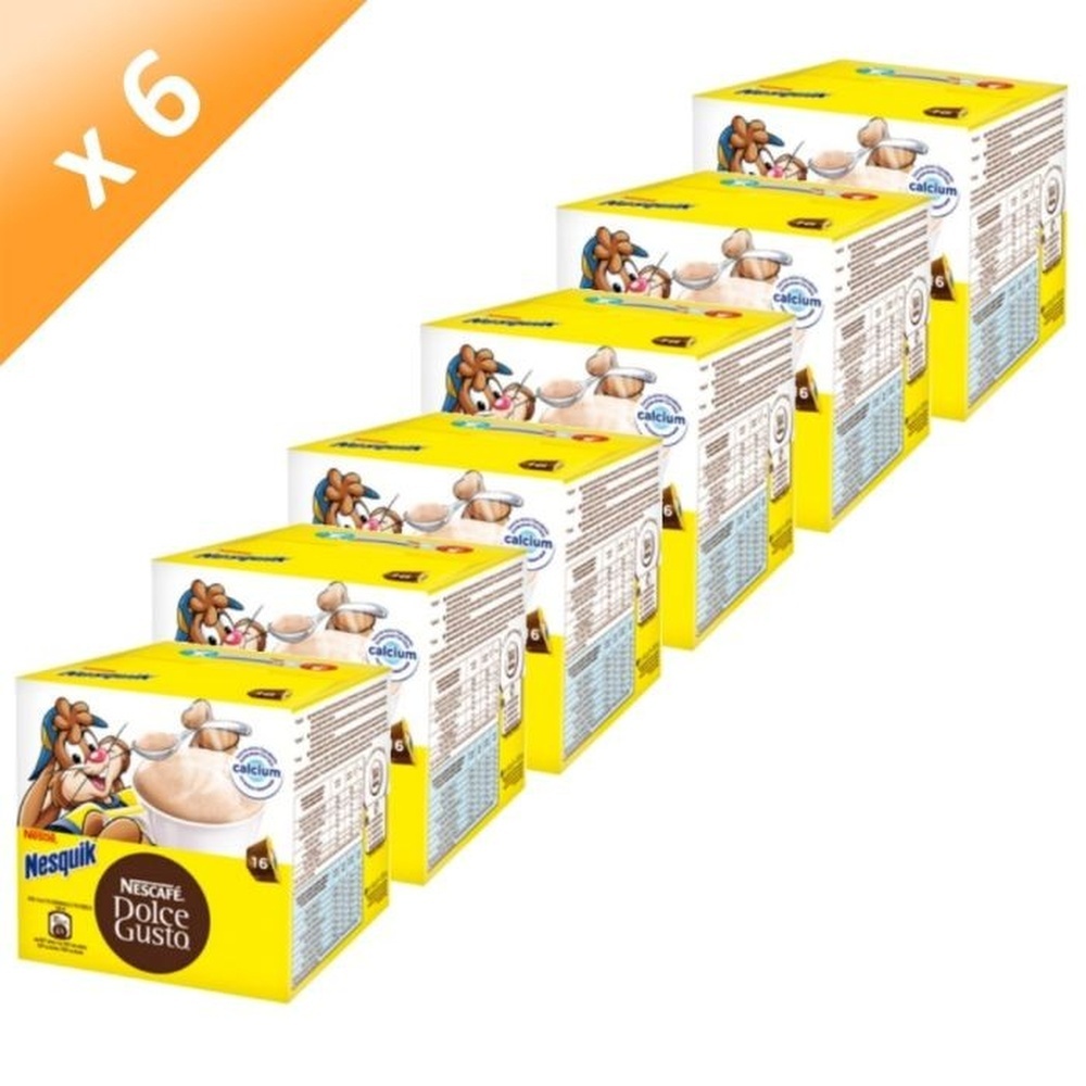 6 packets de 16 Capsules Café Nescafé Dolce Gusto - Saveur : Grande aroma - Teneur en caféine : Caféiné - Spécialité : Sans gluten - Ingrédients : Café torréfié moulu, arôme naturel - Poids : 83.2 Grammes - Dimensions de l'article L x L x H : 12 x 12 x 12 centimètres