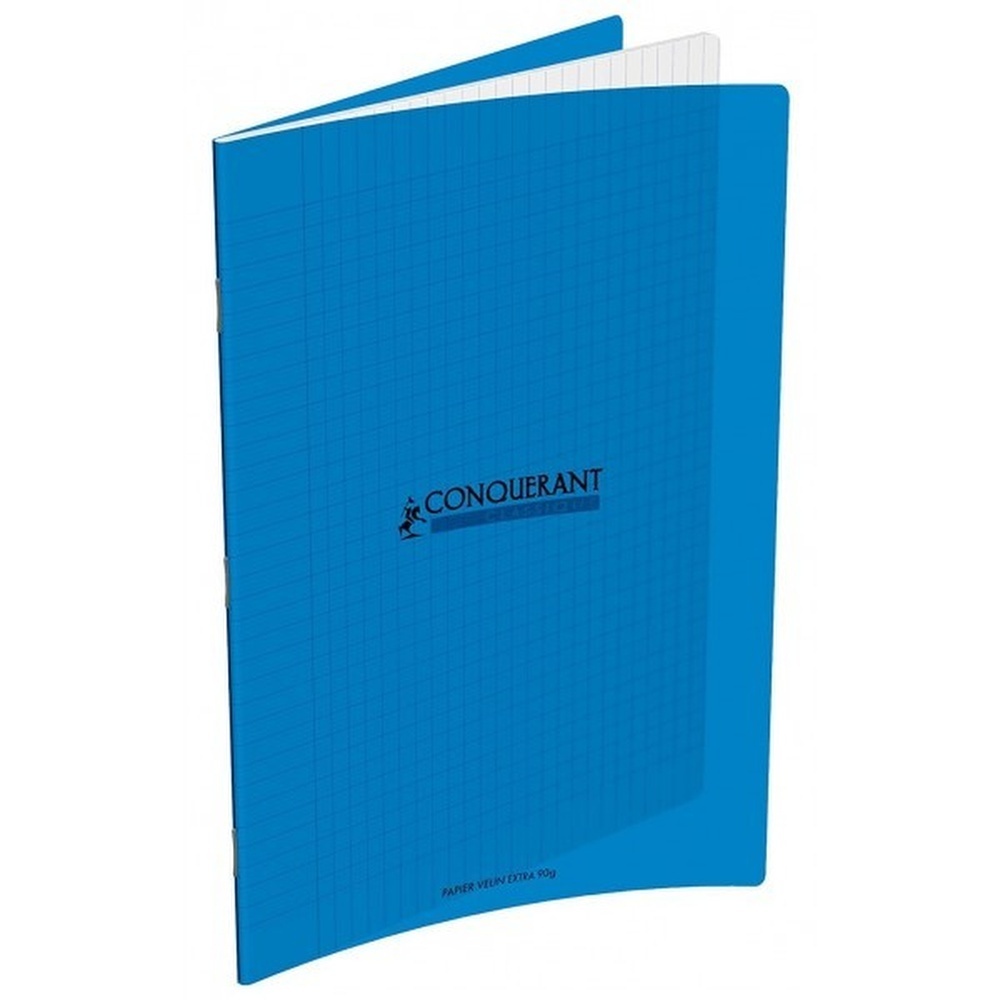 Cahier polypro - grands carreaux  - Marque : Conquéreent - Seyes - Dos agraphé - Dimensions : 24 x 32 cm - 48 pages - Grammage : 90 g/m² - Couleur : Bleu