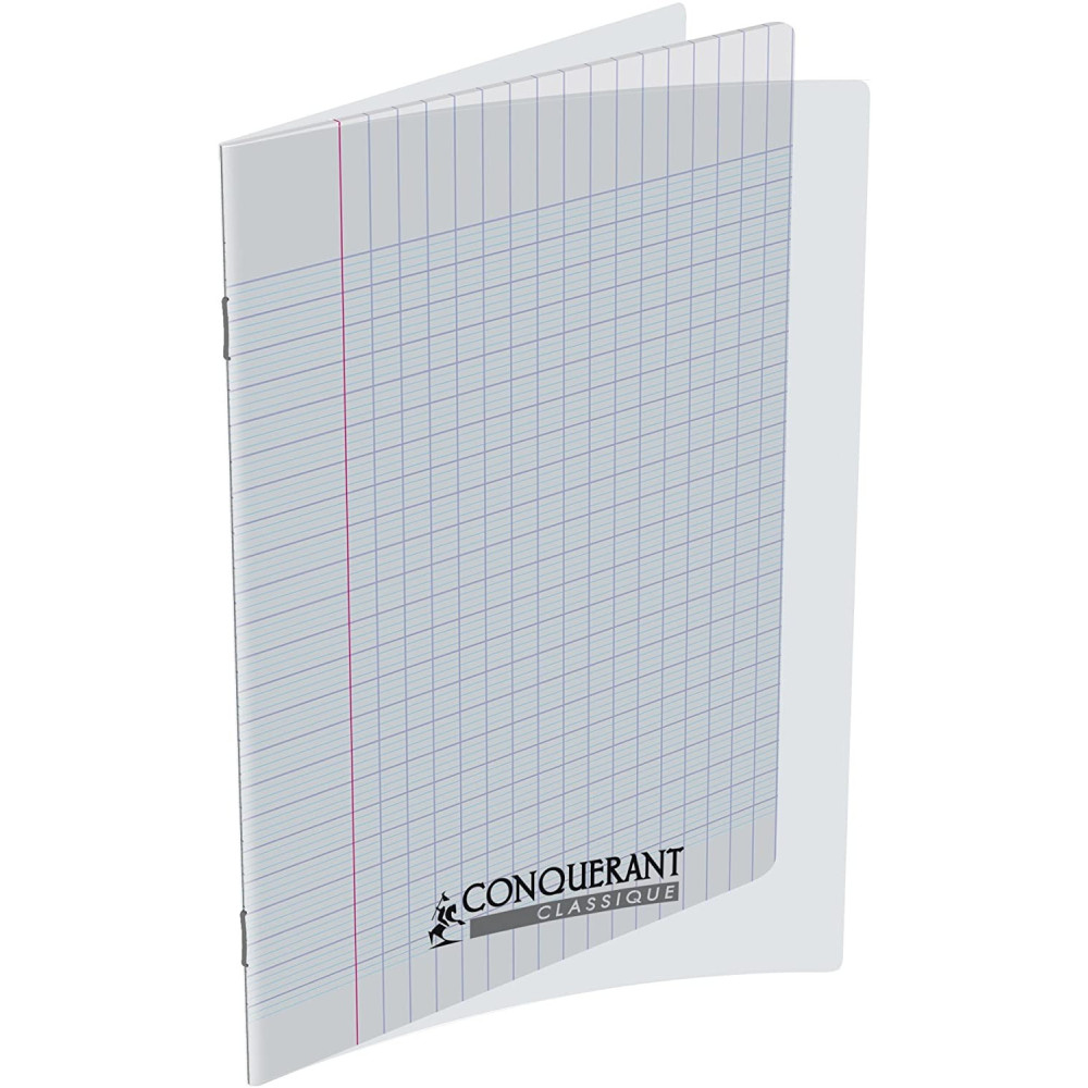 CONQUERANT Cahier Classique A4 Grands Carreaux Seyès 140 Pages Agrafées Couverture Polypro Incolore.