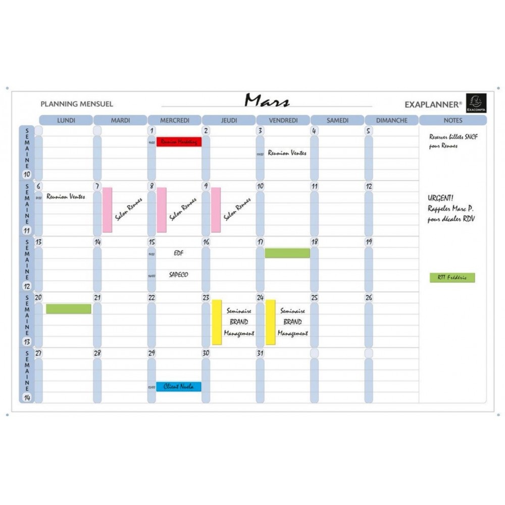Effaçable à sec et magnétique. Livré avec tous les accessoires nécessaires : - 72 magnets 80x16mm, 12 coloris, réutilisables car effaçables à sec - 1 marqueur noir effaçable à sec - 1 boîte de rangement - 1 kit de fixation murale. Couleur : Blanc. Dimensions : 90x59 cm. Poids : 2150g.
