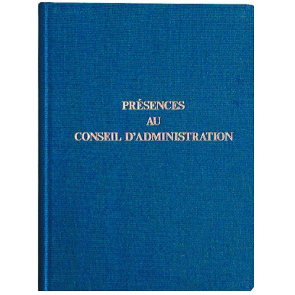Registre 29,7x21cm - Présence Conseils d'Administration 100 pages. Le registre des présence au conseil d'administration permet de consigner les noms et les émargements des administrateurs participants au conseil. Il est obligatoire pour les Sociétés Anonymes.