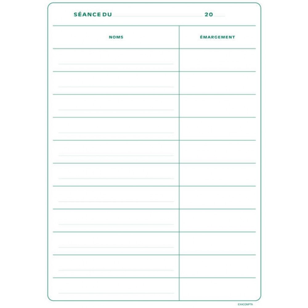 Registre 29,7x21cm - Présence Conseils d'Administration 100 pages. Le registre des présence au conseil d'administration permet de consigner les noms et les émargements des administrateurs participants au conseil. Il est obligatoire pour les Sociétés Anonymes. Le papier Clairefontaine 110 g/m2 satisfait à l'exigence de permanence requise dans la norme ISO 9706 et garantit une très bonne conservation dans le temps. Les registres Exacompta possèdent des couvertures rigides pour une meilleure longévité. Ils sont fabriqués à 100% en France. Poids : 700G.
