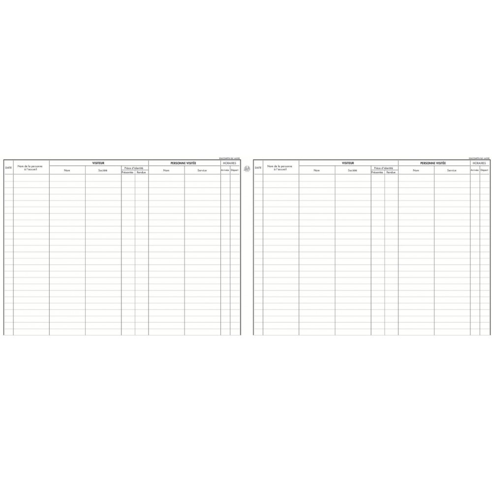 La clarté des tracés Exacompta et leur qualité d'impression avec une encre verte spéciale sont reconnues et appréciées depuis des années. Le registre des visites permet de consigner les entrées et sorties des visiteurs, indispensables dans la plupart des lieux publiques et entreprises. Chaque page est numérotée pour éviter les ruptures et falsifications. Le Papier 110 g/m2 est légèrement teinté, spécialement étudié pour reposer la vue, et mat pour une écriture facile et nette. Il est certifié FSC®, un mode de gestion responsable des forêts. La couverture en carte lustrée est issue de nos papeteries Clairefontaine, elle est noble, rigide, résistante et écologique car également certifiée FSC®.