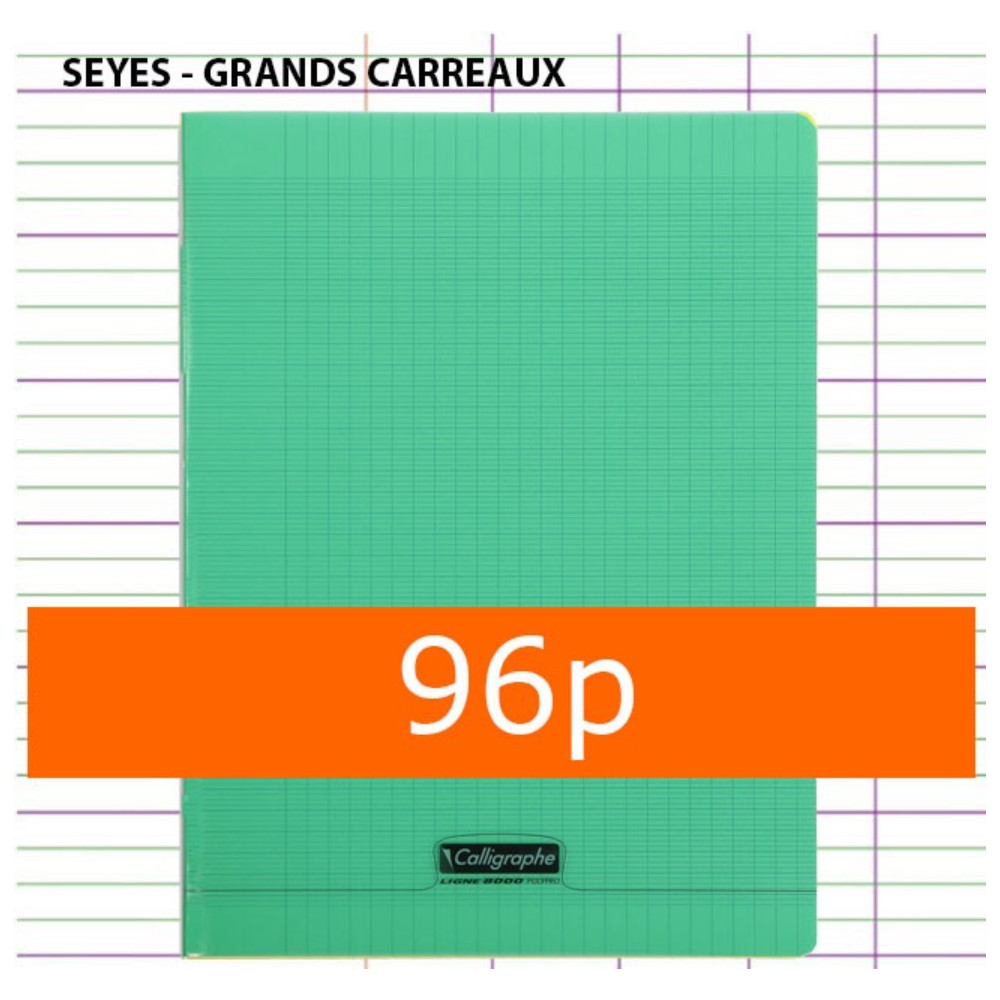 CAHIER GRANDS CARREAUX 96 PAGES 170x220 POLYPRO VERT CALLIGRAPHE