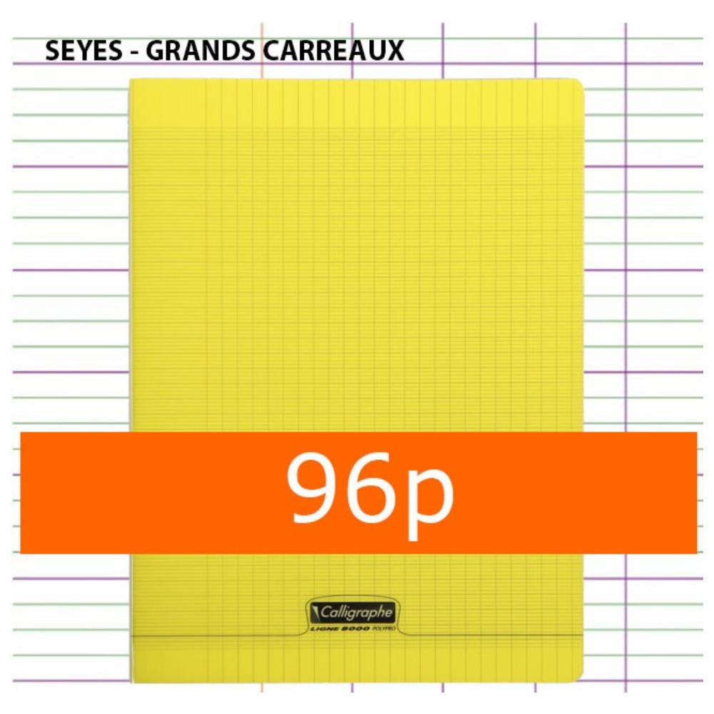 CAHIER GRANDS CARREAUX 96 PAGES 240x320 POLYPRO JAUNE CALLIGRAPHE