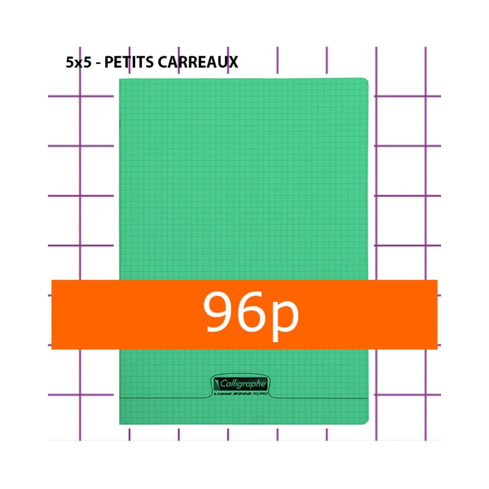 CAHIER PETITS CARREAUX 96 PAGES 240x320 POLYPRO VERT CALLIGRAPHE