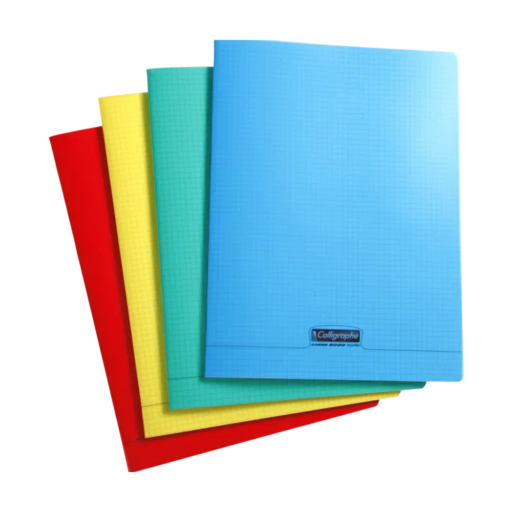 Cahier 24x32 cm 192 pages petits carreaux - Couverture souple et résistante en polypropylène, plus besoin de protège-cahier ! 4 couleurs assorties : bleu, rouge, jaune et vert.