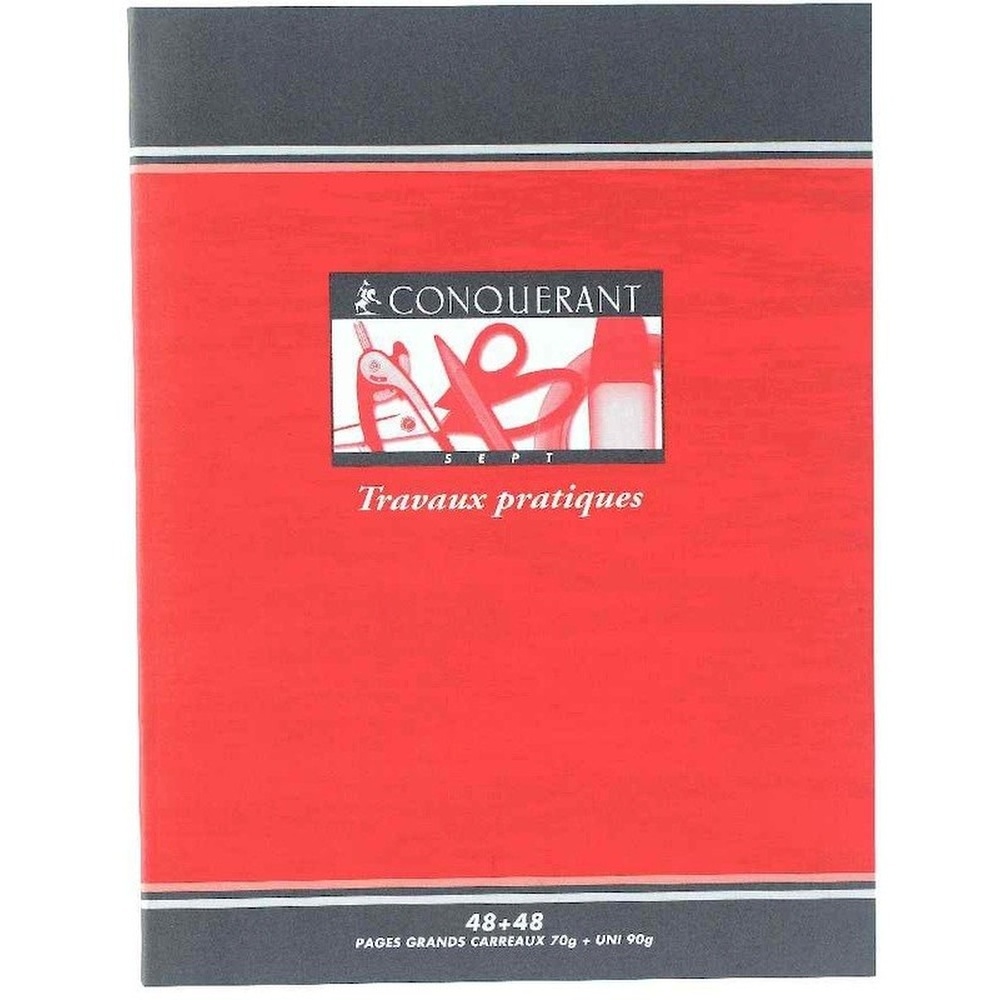 Cahier 170*220 mm (petit format) 96 Pages Travaux Pratiques 70/90G SEYES CONQUERANT7 - Cahier de travaux pratiques, piqûre 96 pages ( 48 pages seyes + 48 pages dessin 90 g ), 17x22 cm. 1 pages seyes 70 g / 1 pages de dessin blanc