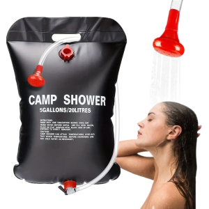 TADOMOE douche Solaire - Capacité : 5 gallons / 20 litres - Pompe à air portable intelligente pour regonfler/arrêter automatiquement le pompage - Jet constant et mode manuel pour un contrôle plus facile - Douche solaire - se réchauffe au soleil pour une douche chaude et apaisante - Ne pas dépasser 50 degrés si l'eau chaude est nécessaire - Ajoutez un peu de soda dans le sac de douche pour le nettoyer lors de la première utilisation - Ne buvez pas et videz l'eau lorsque vous ne l'utilisez pas - Fabriqué en PVC, ne pas toucher les objets pointus pour éviter les rayures - La pompe de douche s'éteint automatiquement si elle détecte que le sac de douche n'est pas utilisé