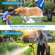 Affichage de la Température: Pompe de douche de camping portable est livrée avec un affichage numérique intelligent qui non seulement affiche clairement la température de l'eau dans le seau, mais dispose également d'un voyant lumineux de couleur -Indicateur de Niveau de Batterie: Douche de camping est très facile à utiliser, maintenez l'interrupteur sur la batterie pendant plus de 3 secondes pour démarrer la pompe. Vert —— 100 % chargé ; Bleu —— chargé à 50 % ; Rouge —— 10 % chargé et besoin de recharger - Batterie 4500 mAh : Douche de camping dispose d'une batterie au lithium intégrée de 4500 mAh, qui offre jusqu'à 80 à 90 minutes d'autonomie pour fonctionner en seulement 3 à 4 heures par charge...