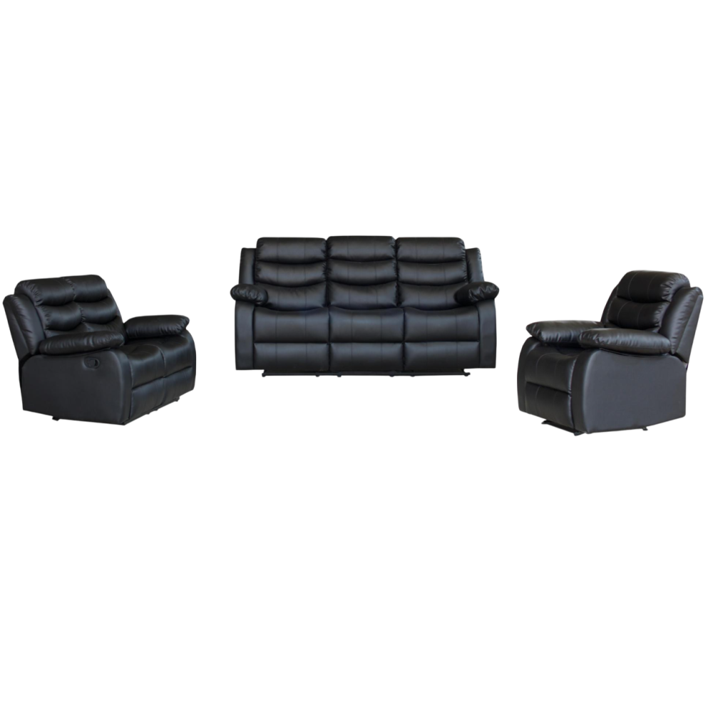 Apportez confort et élégance à votre intérieur avec le Salon Relax 1+2+3 en simili cuir noir XLH-9023. Composé d’un fauteuil, d’un canapé deux places et d’un trois places, cet ensemble allie design moderne et détente absolue. Sa structure en mousse polyuréthane garantit un soutien moelleux et durable, tandis que son revêtement en simili cuir offre une allure chic et un entretien facile. Chaque siège relax manuel vous invite à un moment de bien-être personnalisé. Dimensions : 1 place : 88×94×101 cm ; 2 places : 139×94×101 cm ; 3 places : 190×94×101 cm.