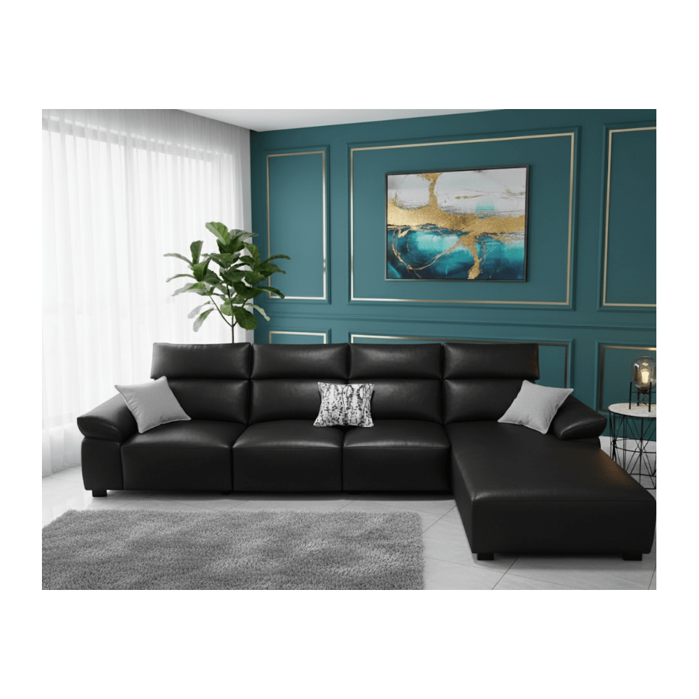 Le canapé d'angle est le choix idéal pour un salon moderne et convivial. Grâce à sa grande méridienne, il offre un espace généreux pour se détendre en famille ou recevoir confortablement vos invités. Son design contemporain, avec dossiers bien rembourrés et assise large, garantit un excellent confort au quotidien. Revêtu d’un tissu coloris noir, élégant et intemporel, il s’intègre facilement à tous les styles de décoration. Parfait pour les grands espaces, ce canapé allie style, praticité et confort. Dimensions : 365 x 180 cm.
