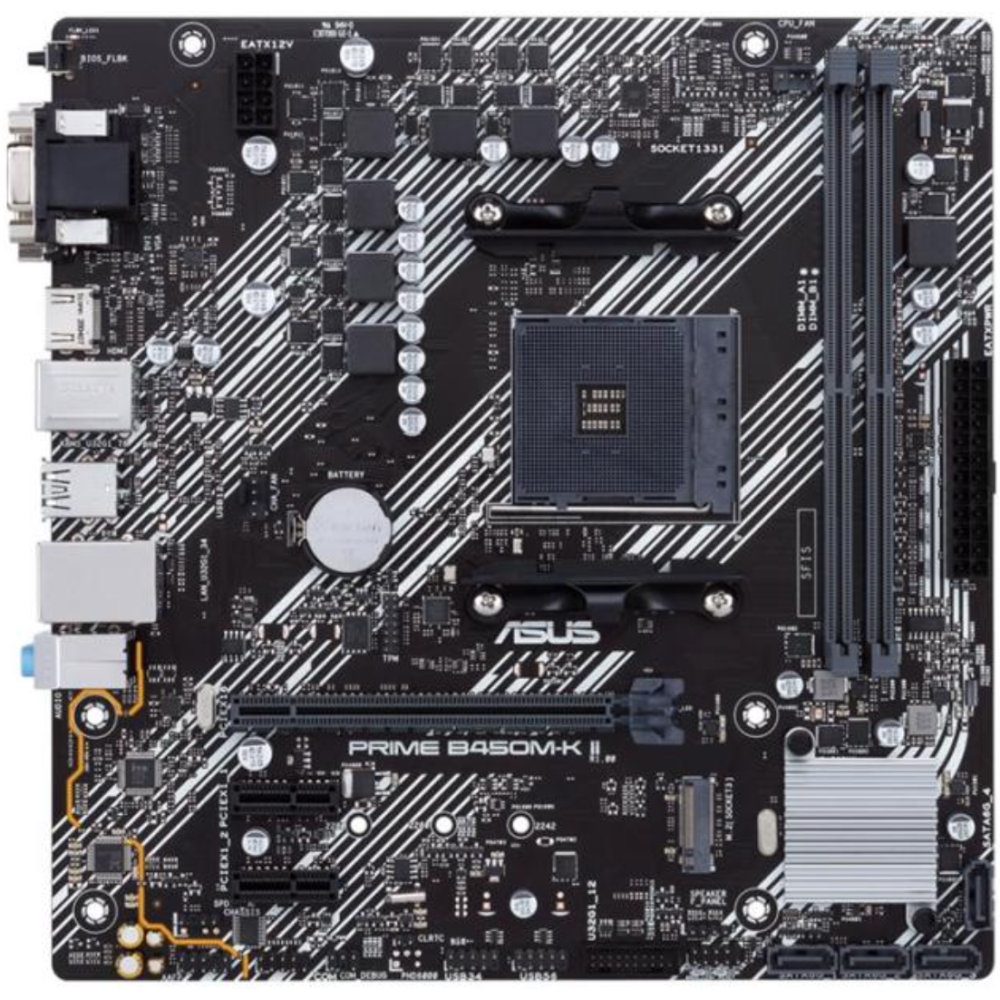 ASUS PRIME B450M-K II - Carte-mère - micro ATX - Socket AM4 - AMD B450 Chipset - USB 3.2 Gen 1 - Gigabit LAN - carte graphique embarquée (unité centrale requise) - audio HD (8 canaux)