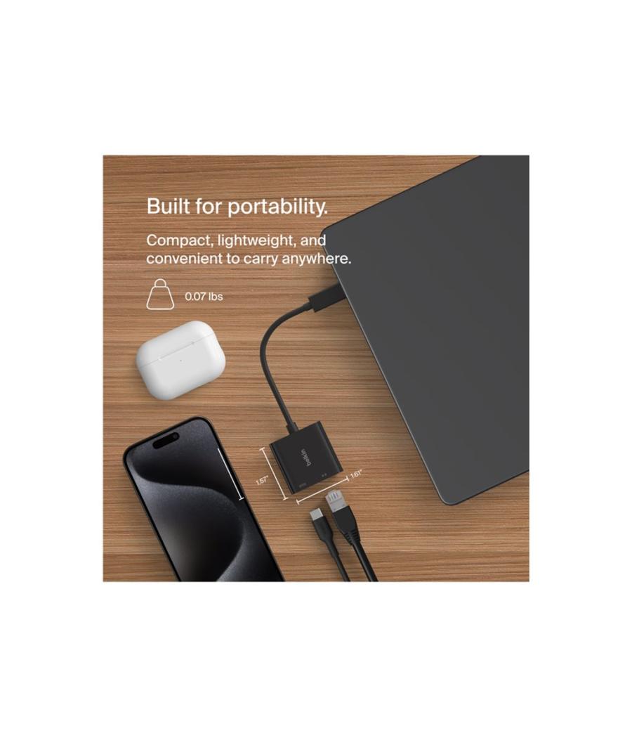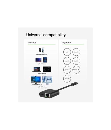 Belkin CONNECT - Adaptateur réseau - USB-C - Gigabit Ethernet x 1 + USB-C (uniquement alimentation) x 1
