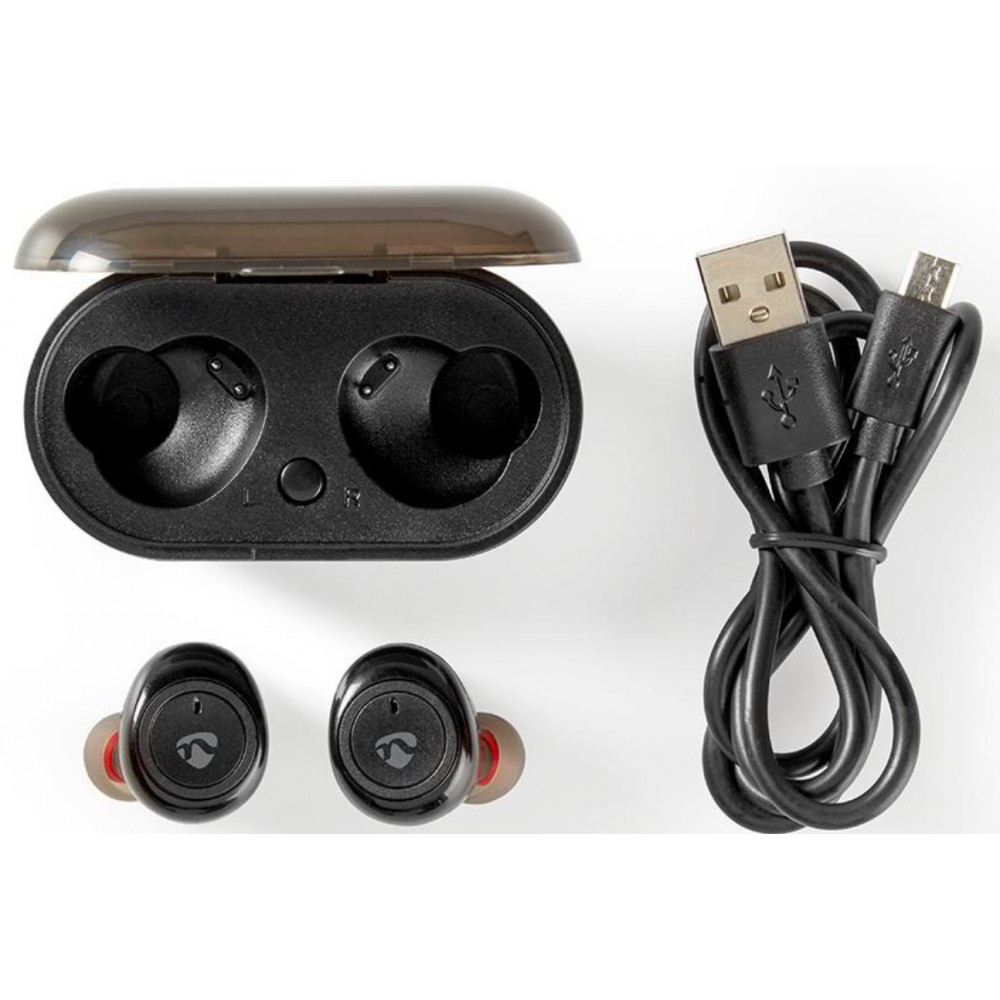 Profitez de votre musique en streaming et de vos appels téléphoniques avec ces écouteurs NEDIS sans-fil - Contient un boitier de charge et des embouts de différentes tailles -
