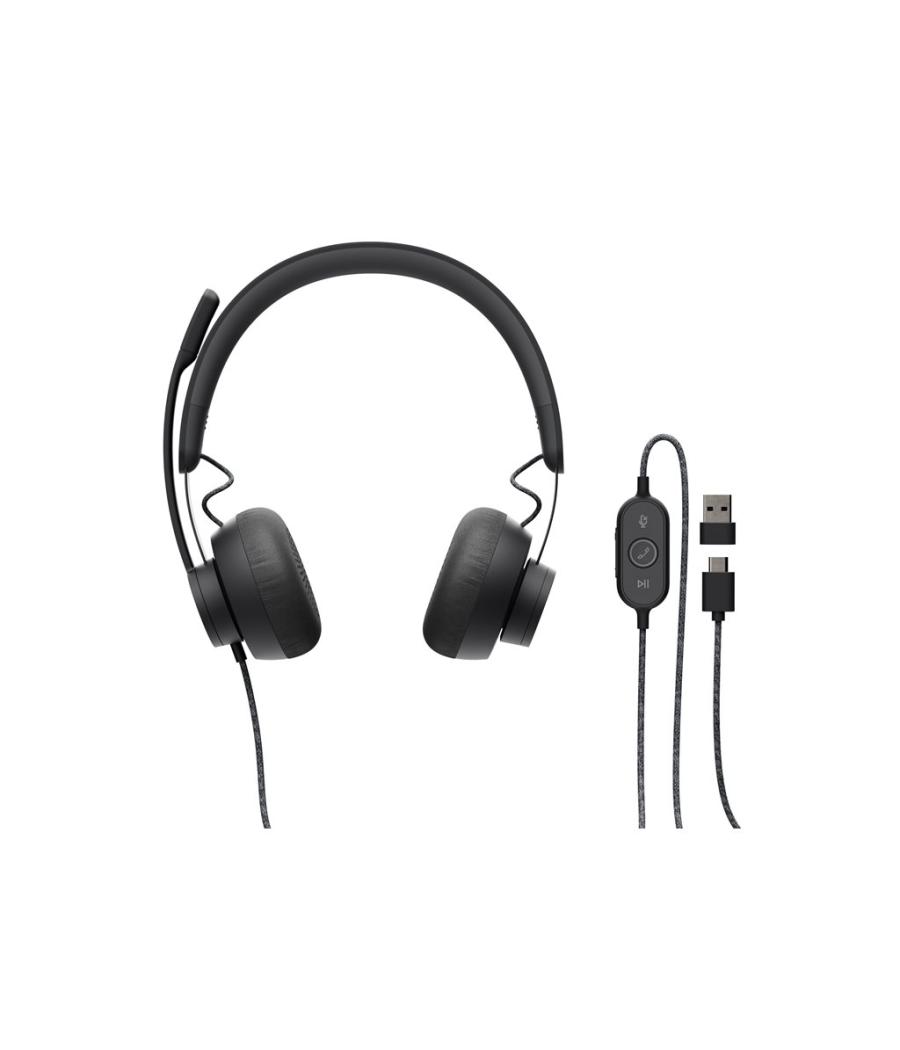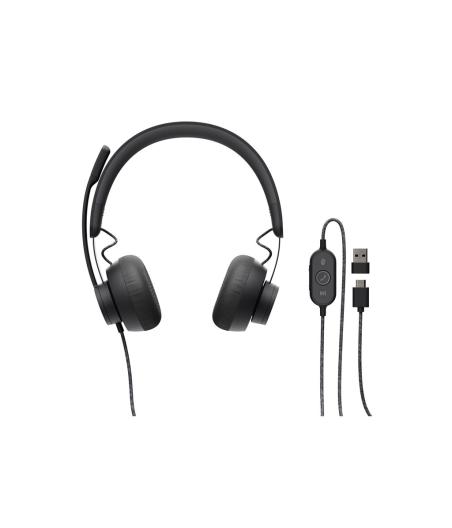 Logitech Zone Filaire - Micro-casque - sur-oreille - filaire - USB-C - graphite