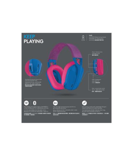 Logitech Lightspeed G435 - Micro-casque - circum-aural - fréquence/Bluetooth radio de 2,4 GHz - sans fil - bleu - Certifié Discord