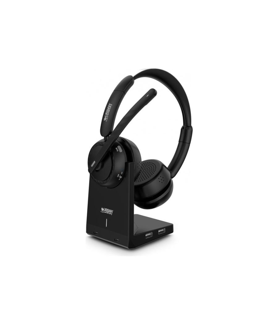 Urban Factory MOVEE Max - Avec support de charge micro-casque - sur-oreille - Bluetooth - sans fil - Suppresseur de bruit actif - USB-A via adaptateur Bluetooth - isolation acoustique - noir