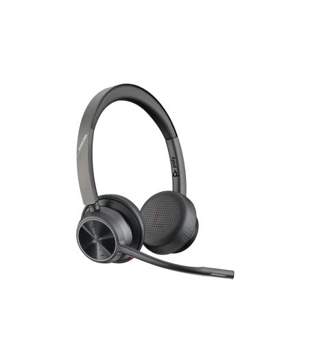 Poly Voyager 4320-M - Micro-casque - sur-oreille - Bluetooth - sans fil, filaire - USB-A via adaptateur Bluetooth - noir - certifié Zoom, Certifié pour Microsoft Teams