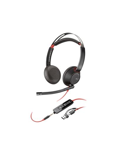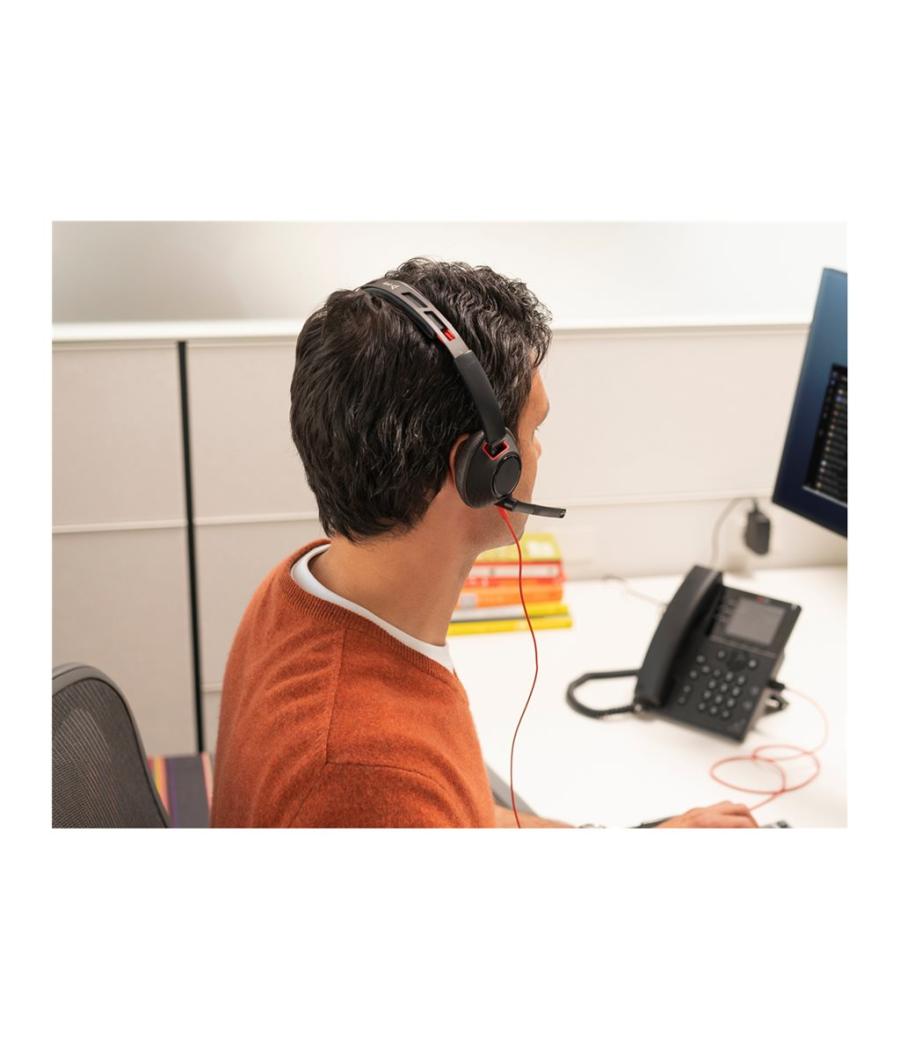 Poly Blackwire 5220 - Micro-casque - sur-oreille - filaire - jack 3,5mm, USB-C - noir - Certifié pour Skype for Business, certifié Zoom, Certifié pour Microsoft Teams, Certifié Avaya, certifié Cisco Jabber, Works With Chromebook Certified, certifié UC