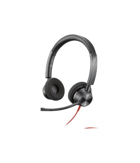 Poly Blackwire 3320 - Blackwire 3300 series - micro-casque - sur-oreille - filaire - USB-C - noir - Certifié pour Microsoft Teams, certifié UC