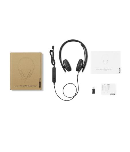 Lenovo Gen 2 - Micro-casque - sur-oreille - filaire - USB-C - noir - Certifié pour Microsoft Teams