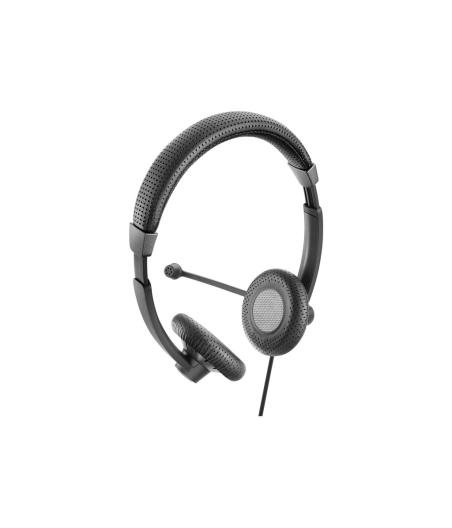 | Micro-casque filaire binaural certifié Skype Entreprise avec connectivité USB et jack 3,5 mm. Il permet aux agents des centres de contact de combiner confort, style et qualité audio tout en gérant leurs appels depuis leurs mobiles et PC/softphones. | |
