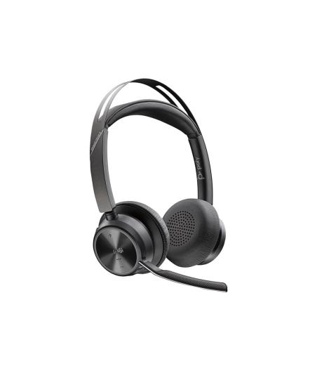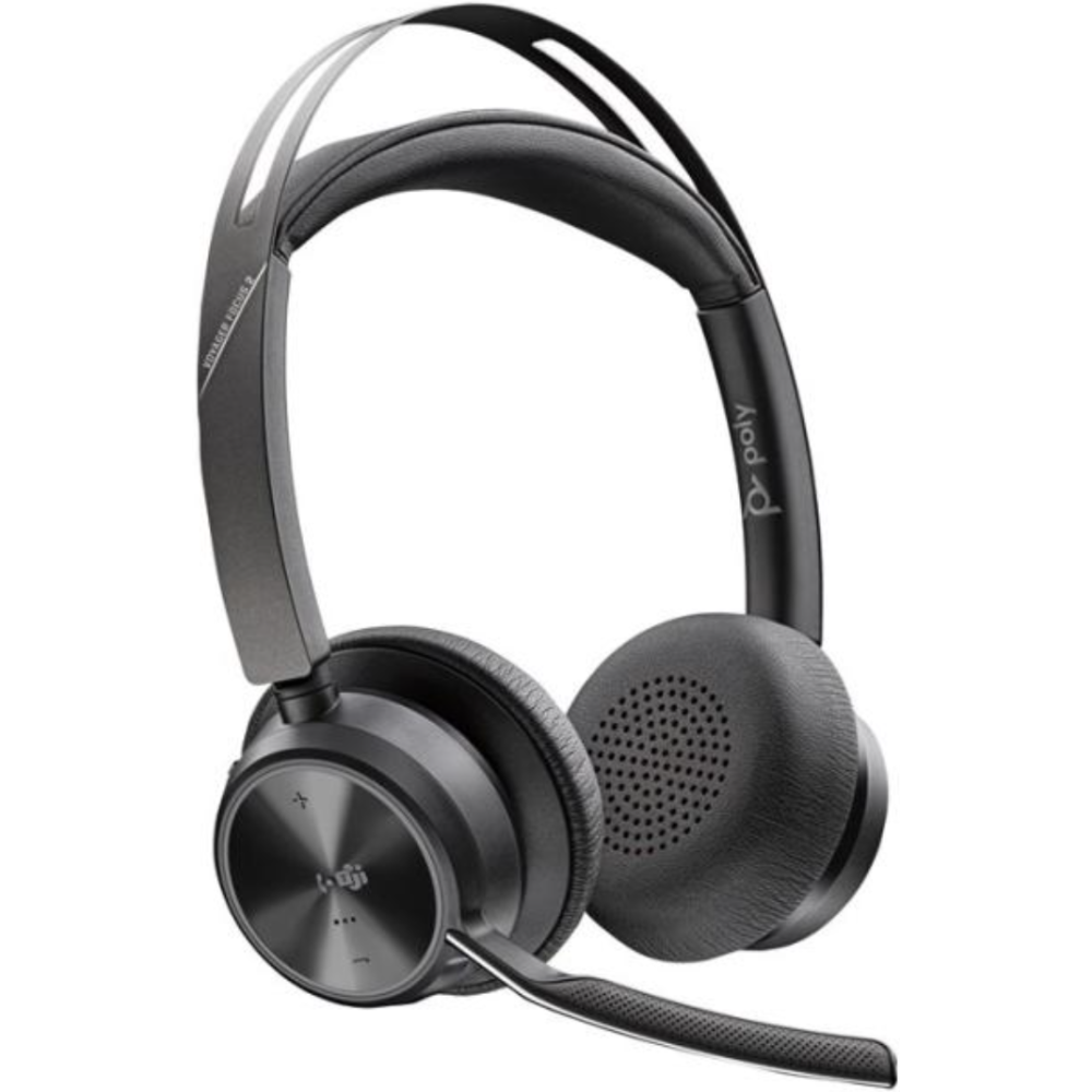 Poly Voyager Focus 2 - Micro-casque - sur-oreille - Bluetooth - sans fil - Suppresseur de bruit actif - USB-C via un adaptateur Bluetooth - noir - Certifié pour Microsoft Teams, certifié Zoom