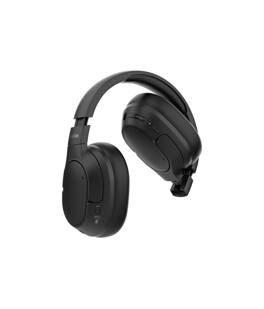 Belkin SoundForm Isolate - Écouteurs avec micro - circum-aural - Bluetooth - sans fil, filaire - Suppresseur de bruit actif - USB-C, jack 3,5mm - isolation acoustique - noir