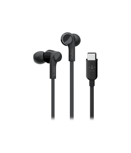 Belkin ROCKSTAR - Écouteurs avec micro - intra-auriculaire - filaire - USB-C - isolation acoustique - noir