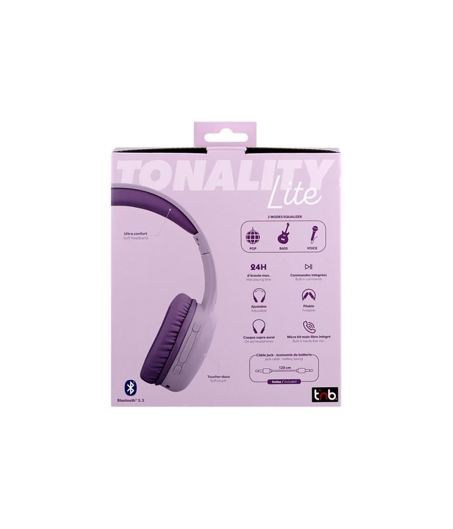 T'nB TONALITY CBTONESUPPK - ?couteurs avec micro - sur-oreille - Bluetooth - sans fil, filaire - jack 3,5mm - isolation acoustique - lilas, mauve