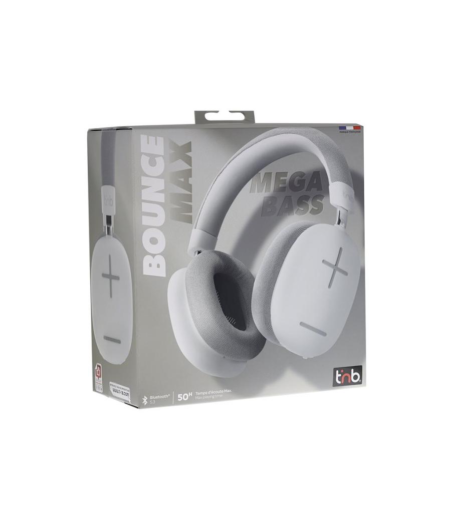 T'nB BOUNCE MAX - ?couteurs avec micro - circum-aural - Bluetooth - sans fil, filaire - jack 3,5mm - isolation acoustique - blanc, gris