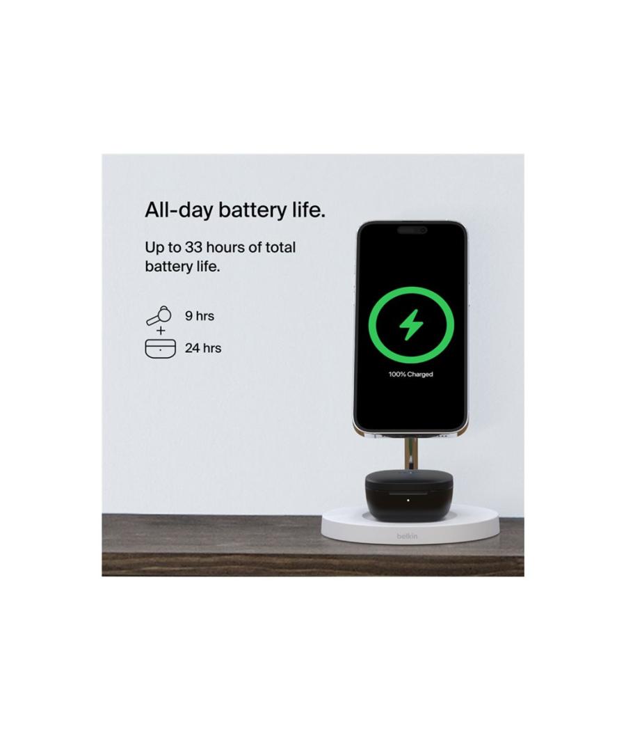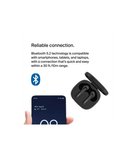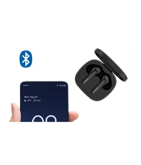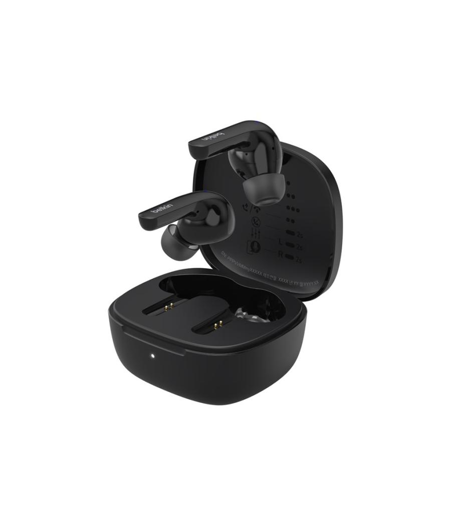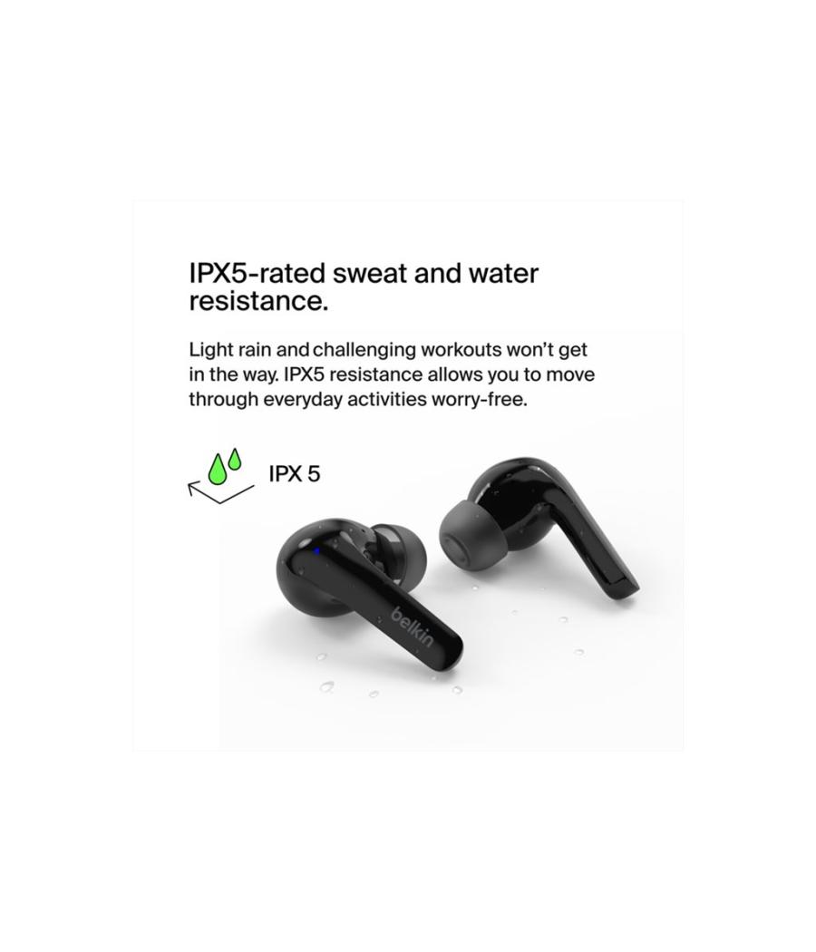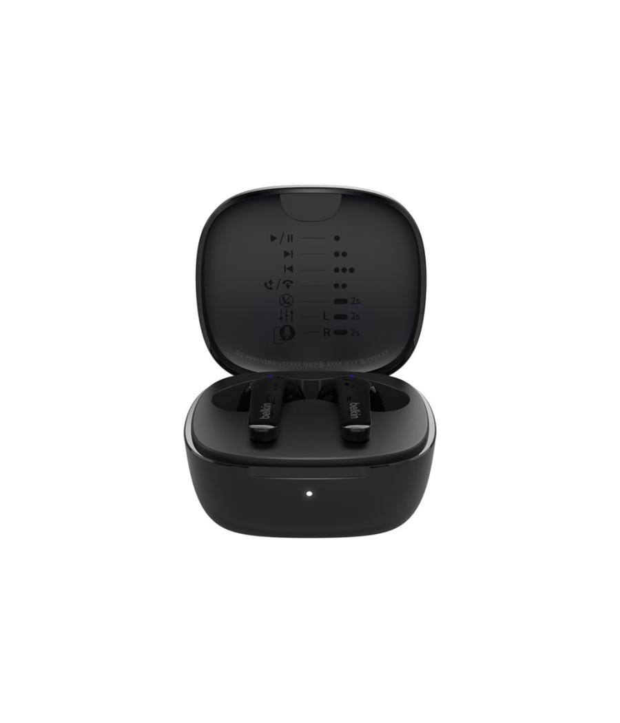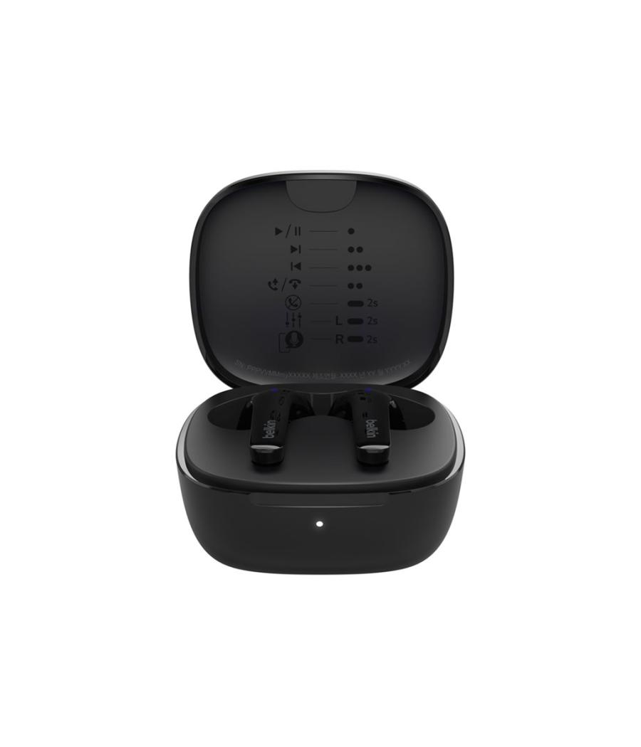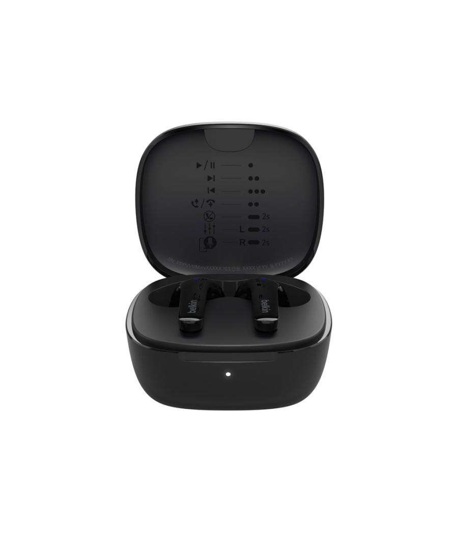 | Profitez au maximum de vos trajets, de vos entraînements et de votre temps libre grâce à des écouteurs sans fil véritables, dotés d'un couplage et de commandes Bluetooth transparents. Les haut-parleurs de 12 mm et les 3 préréglages d'égalisation offrent le son Belkin Signature pour une expérience audio personnelle de haute fidélité. | |