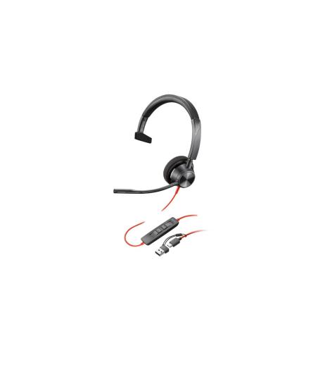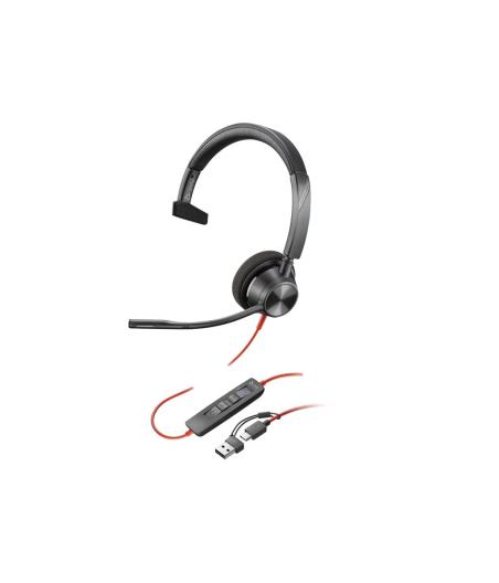 Poly Blackwire 3310 - Blackwire 3300 series - micro-casque - sur-oreille - filaire - USB-A - noir - Certifié pour Microsoft Teams, certifié UC