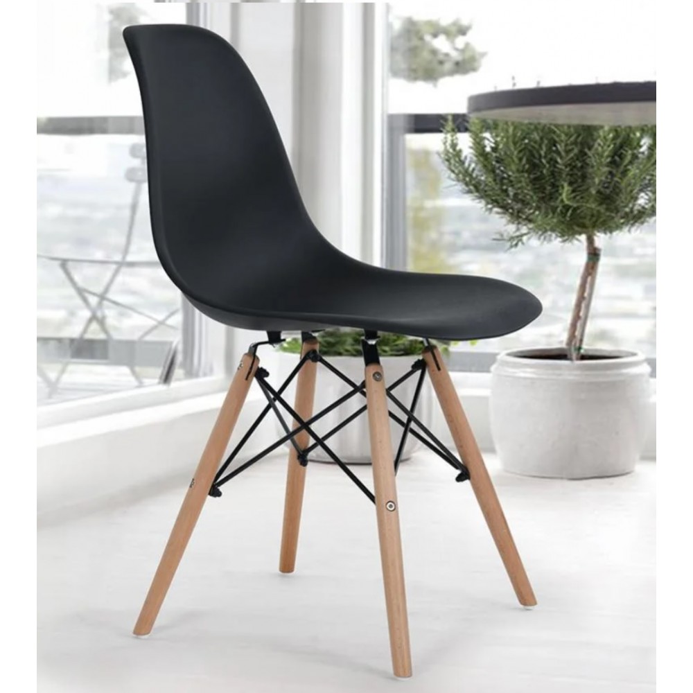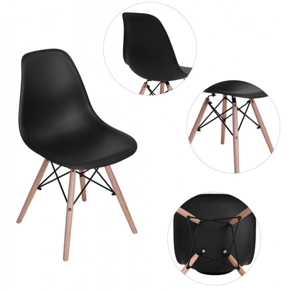 Chaise de séjour NOE type scandinave - Matière siège en polypropylène - Pieds en bois de hêtre - Dimensions: 53*46*82cm - Couleur noir - Vendu en lot de 4 pièces